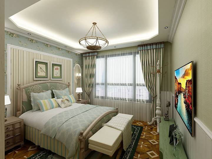 卧室一般不需要很强的光线,颜色最好选择柔和温暖的色调。可用壁灯、落地灯和台灯取代室内顶灯,光线都要清淡柔和,会显得卧室更舒适温馨。