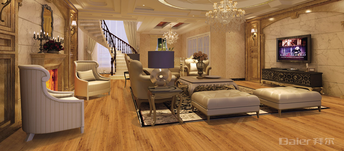 拜尔三层实木地板保留了天然实木地板的优点,在地板内使三种木性和木质不同的 板材互补,形成最佳的应力配合,避免了地板易变形的缺点。表面选用硬质木材, 色泽、纹理自然朴素,并用六层UV紫光固化油漆处理,充分保证了地板的耐磨性; 中层和底层选用杨木、松木等软质木材,使地板具有弹性,脚感好的作用。