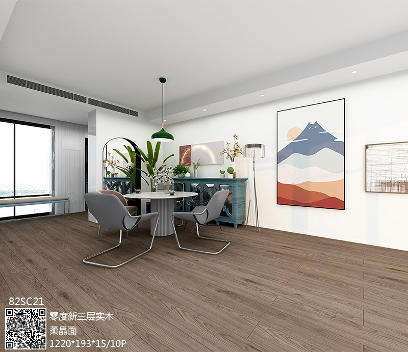 拜尔零度新三层实木地板保留了天然实木地板的优点,在地板内使三种木性和木质不同的 板材互补,形成最佳的应力配合,避免了地板易变形的缺点。表面选用硬质木材, 色泽、纹理自然朴素,并用六层UV紫光固化油漆处理,充分保证了地板的耐磨性; 中层和底层选用杨木、松木等软质木材,使地板具有弹性,脚感好的作用。